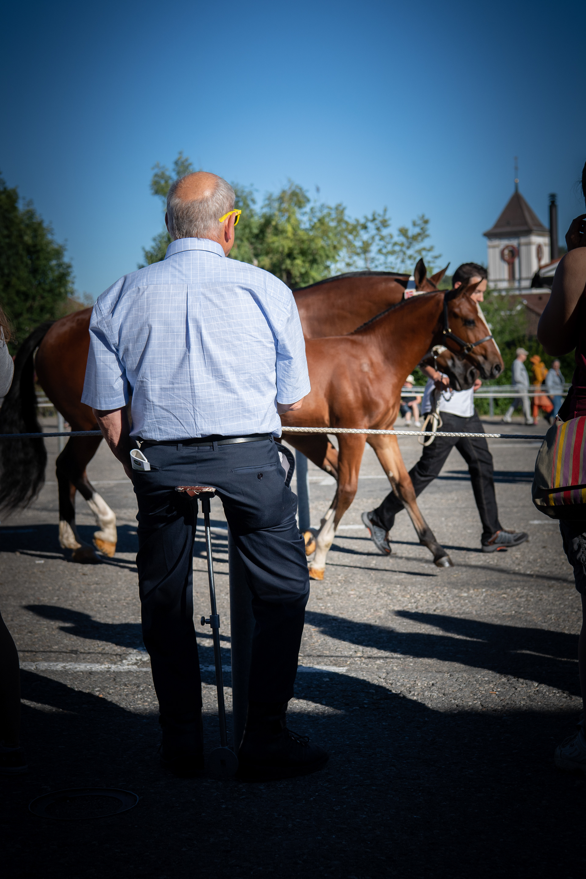 GUY PARMELIN ENLEVÉ PAR LES FEMMES DU "MEITLISONNTIG" - MARCHE-CONCOURS NATIONAL DE CHEVAUX DE SAIGNELEGIER - POUR LE MARCHE-CONCOURS - AOUT 2022